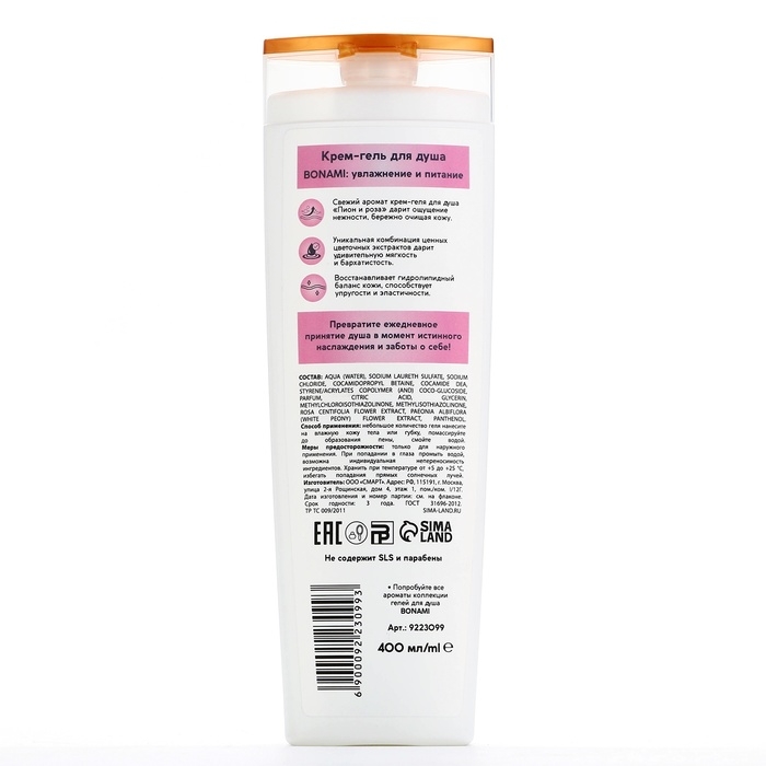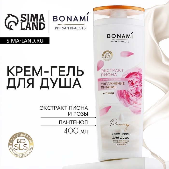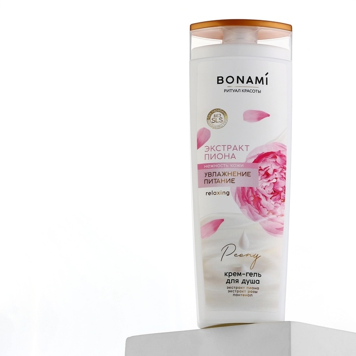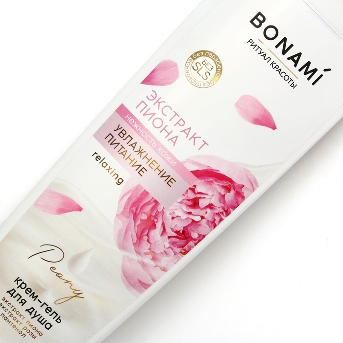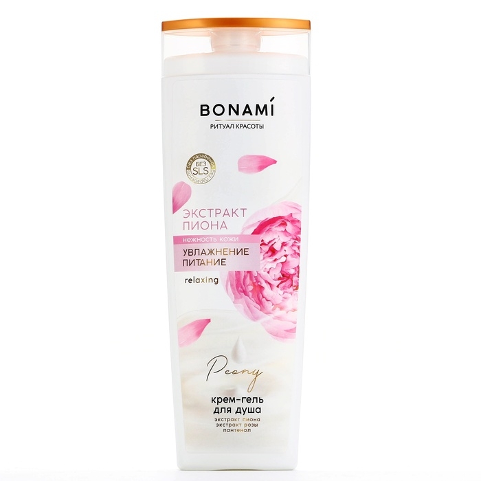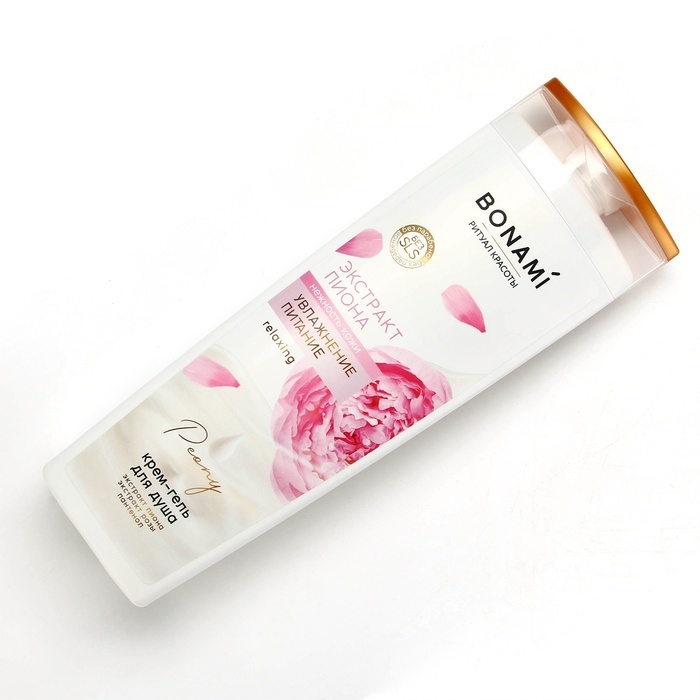 Гель для душа с пантенолом, увлажнение и питание, 400 мл, аромат пиона и розы, BONAMI