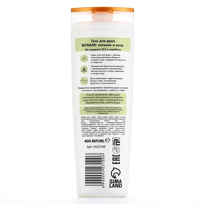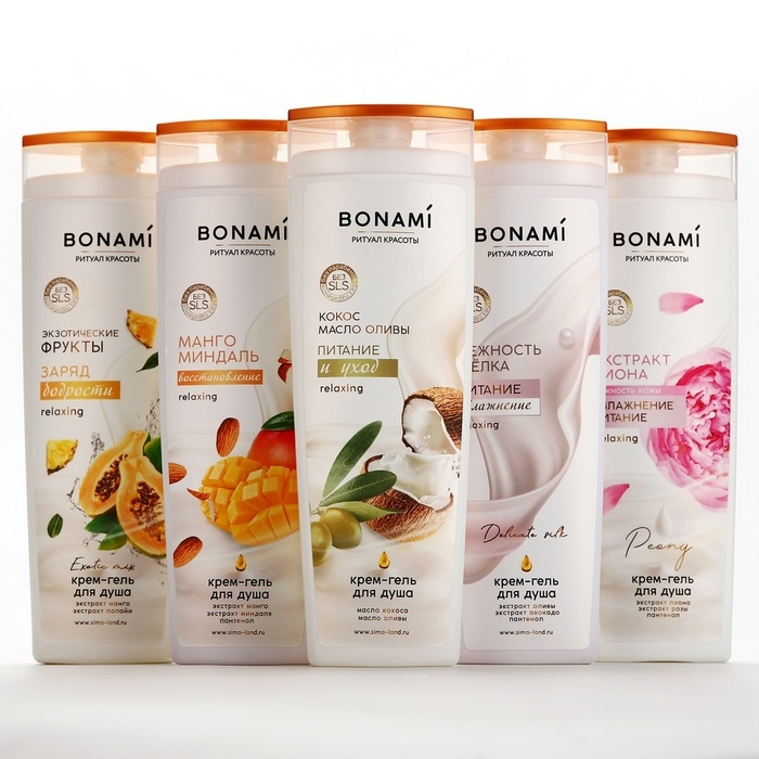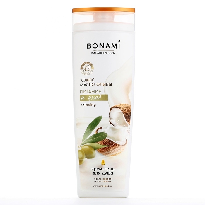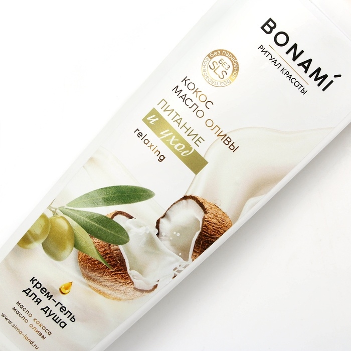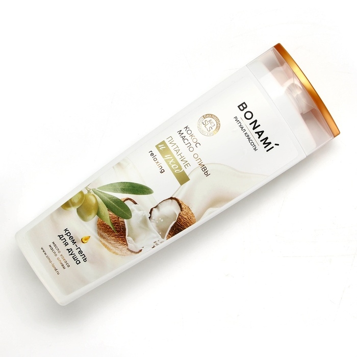 Гель для душа, питание и уход, 400 мл, аромат оливы и кокоса, BONAMI