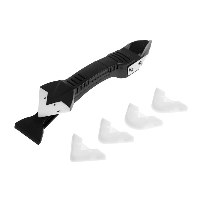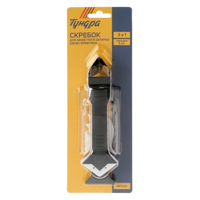 Скребок-шпатель для удаления и выравнивания герметика ТУНДРА, металл, 3 в 1, 5 насадок