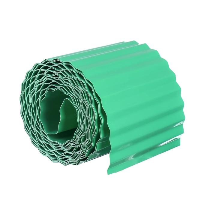 Лента бордюрная, 0.15 × 9 м, толщина 0.6 мм, пластиковая, гофра, зелёная, Greengo