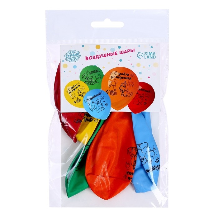 Воздушный шар латексный 12" «Весёлого Дня Рождения», 5 шт.