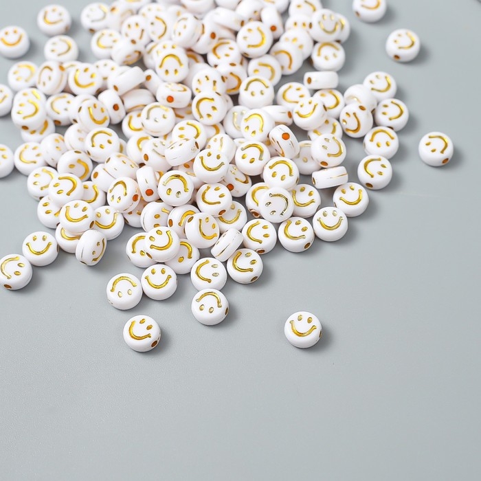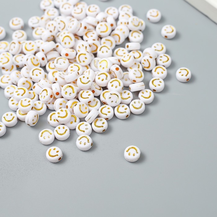 Бусины для творчества пластик "Золотой смайлик на белом" набор 20 гр 0,4х0,7х0,7 см