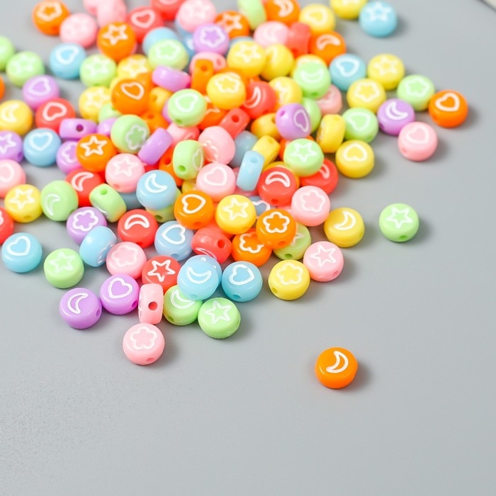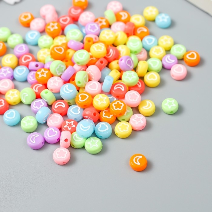Набор бусин для творчества пластик "Сердечки и звёзды" цветные 20 гр 0,4х0,7х0,7 см