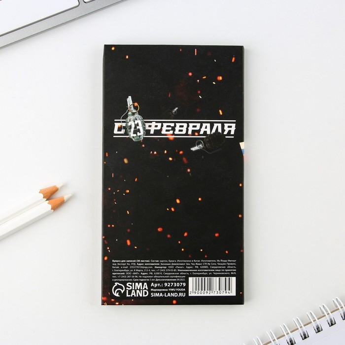 Блок бумаг с липким слоем «23 февраля», 30 л