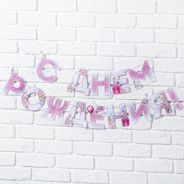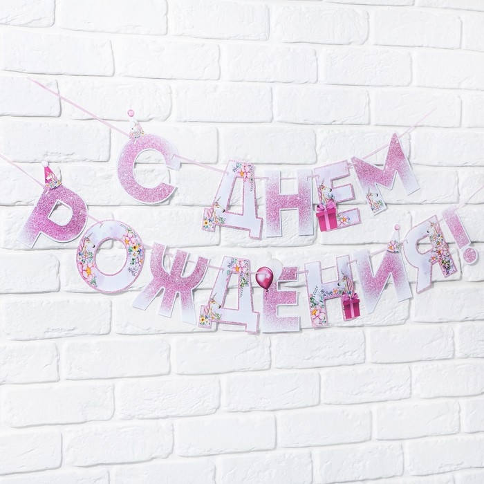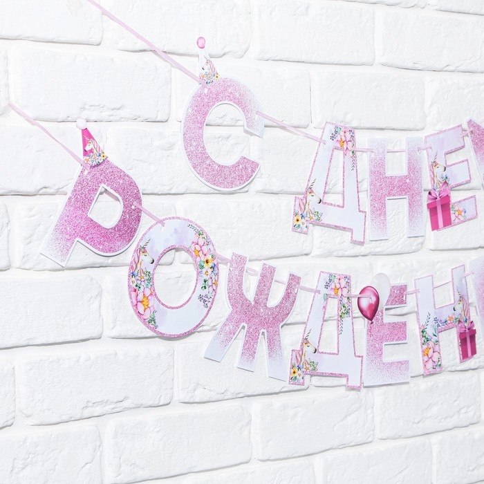 Гирлянда «С днем Рождения», единорог, длина 250 см