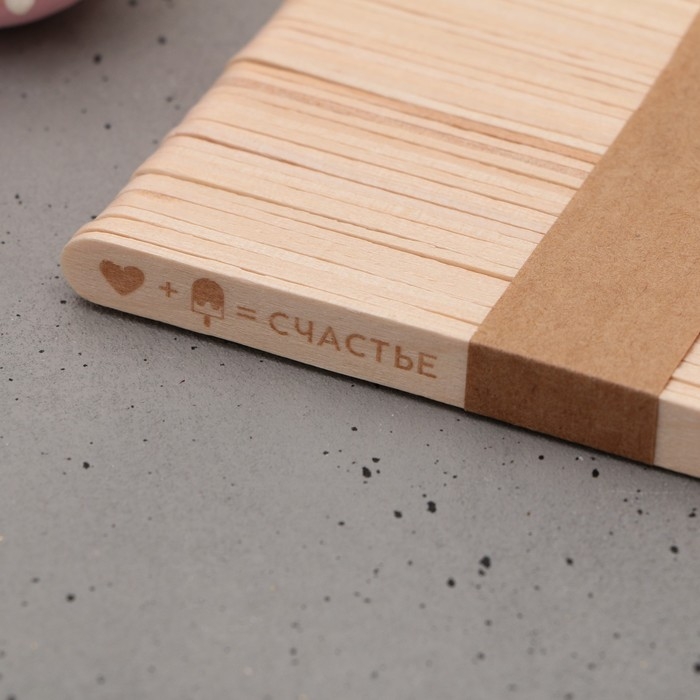 Палочки для мороженого деревянные «Счастье», набор 50 шт, 11.4 х 1 см