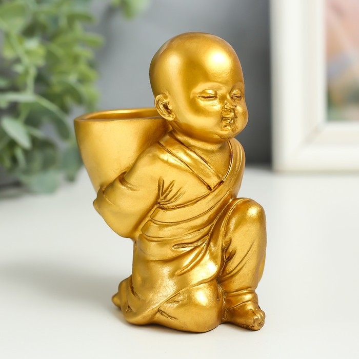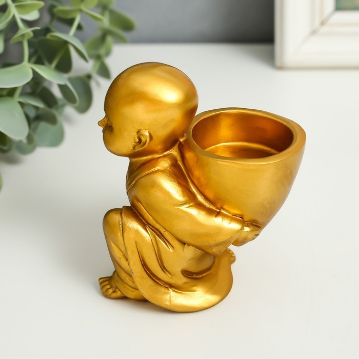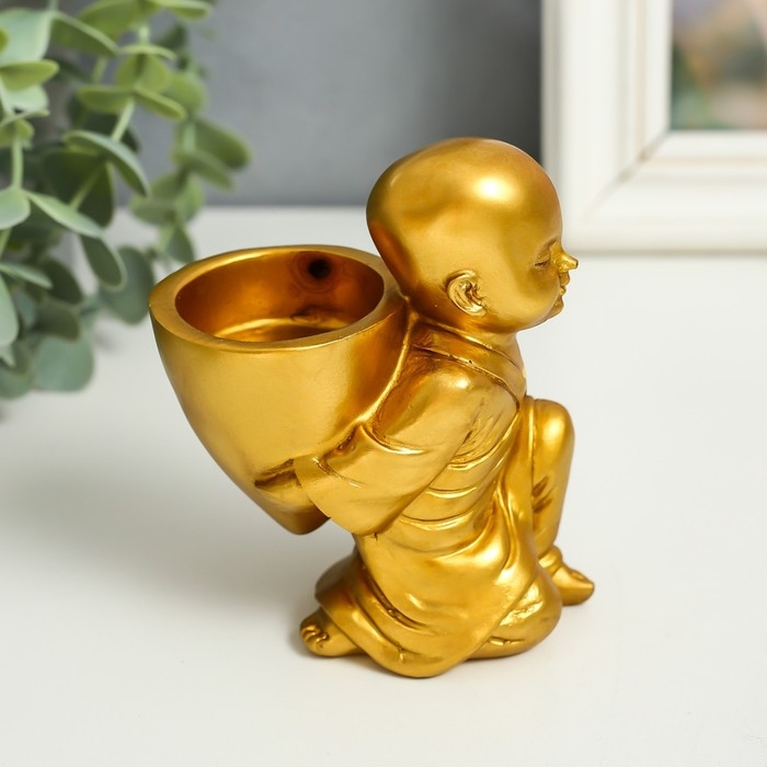 Сувенир полистоун подсвечник на 1 свечу "Маленький будда" 7,5х5х10 см