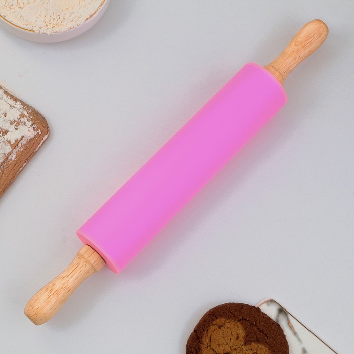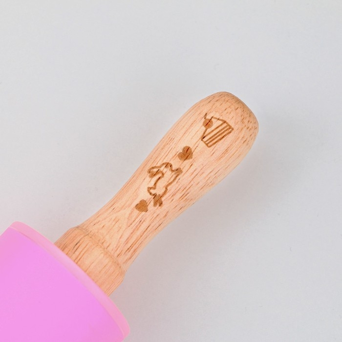 Скалка «Зайки», 31 х 4 см, силикон, дерево, цвет розовый
