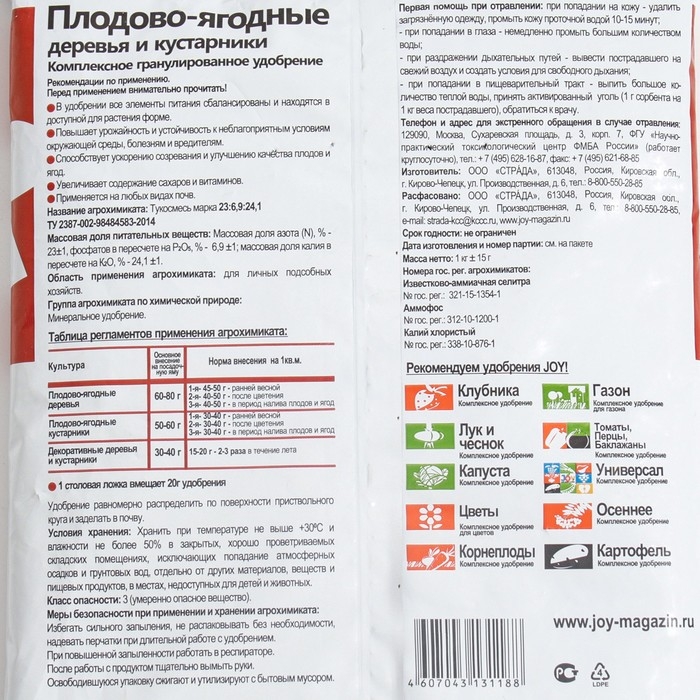 Удобрение комплексное "Плодово-ягодные" JOY, 1 кг