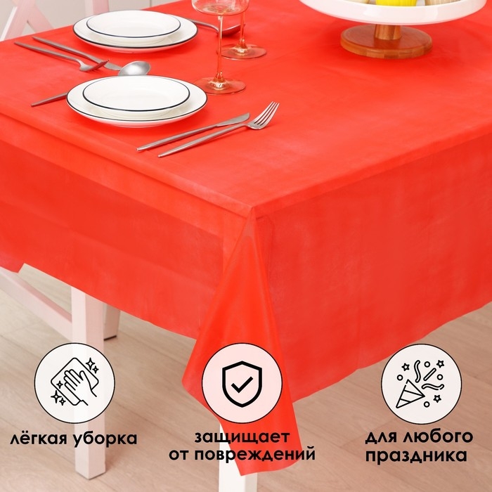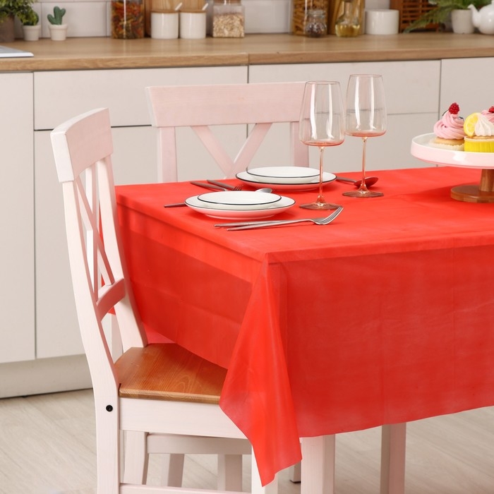 Скатерть на стол Доляна «Праздничный стол», 137×183 см, толщина 30 мкм, цвет красный