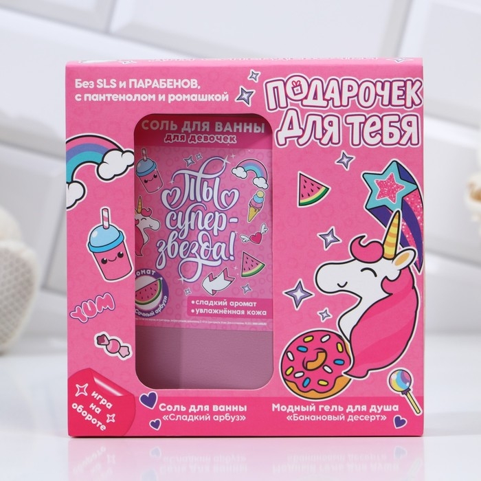Подарочный набор косметики детский «Подарочек для тебя», пена для ванны 250 мл и соль для ванны 200 г, ЧИСТОЕ СЧАСТЬЕ