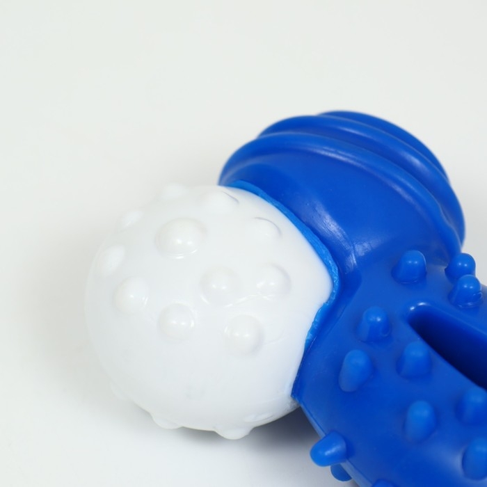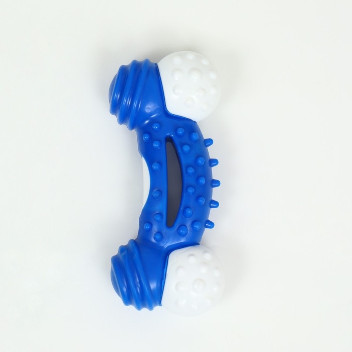 Игрушка двухслойная (твердый и мягкий пластик) "Изогнутая кость", 13 см синяя