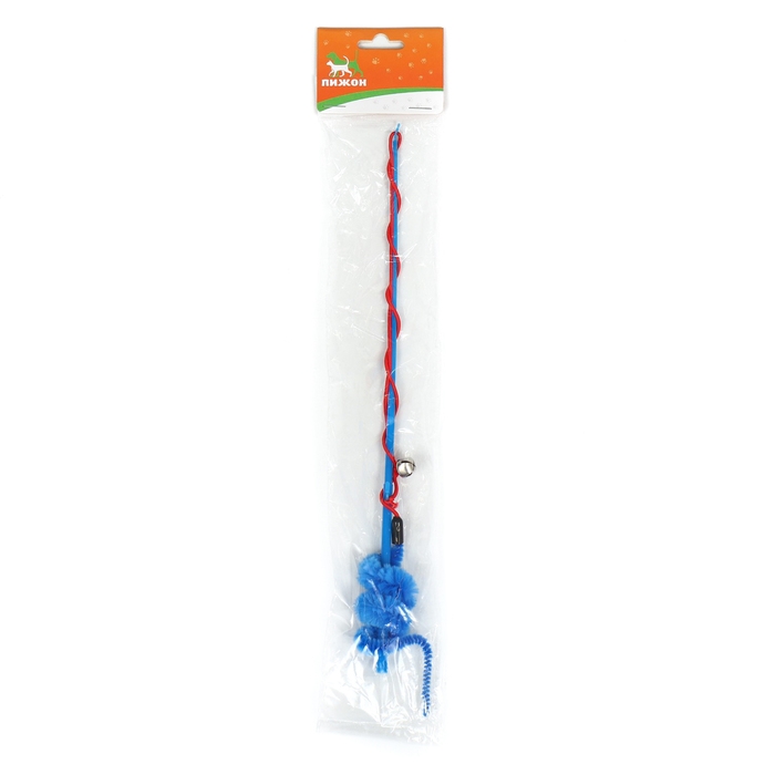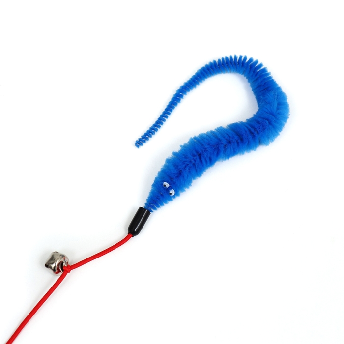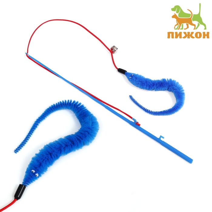 Дразнилка-удочка "Червячок на рыбалке" с бубенчиком, 30 см, синяя