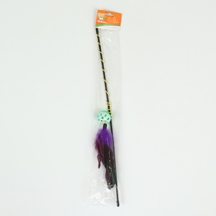 Дразнилка с цветным шариком и перьями, 49 см, палочка микс цветов