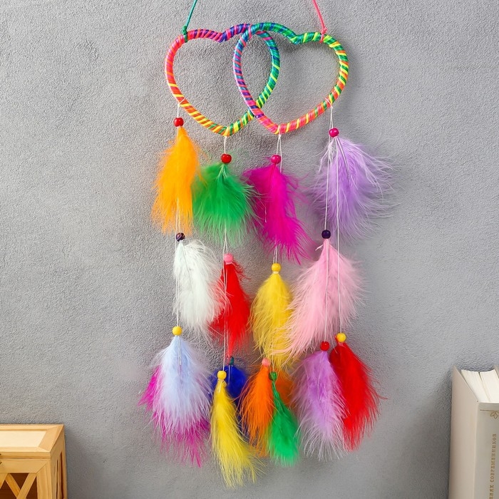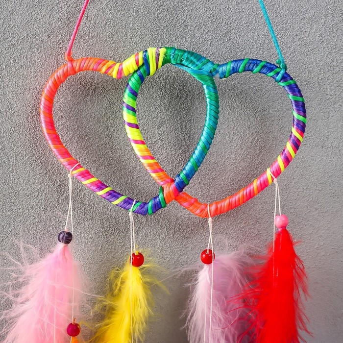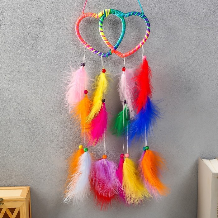 Ловец снов "Сплетённые сердца" яркие перья 55 см