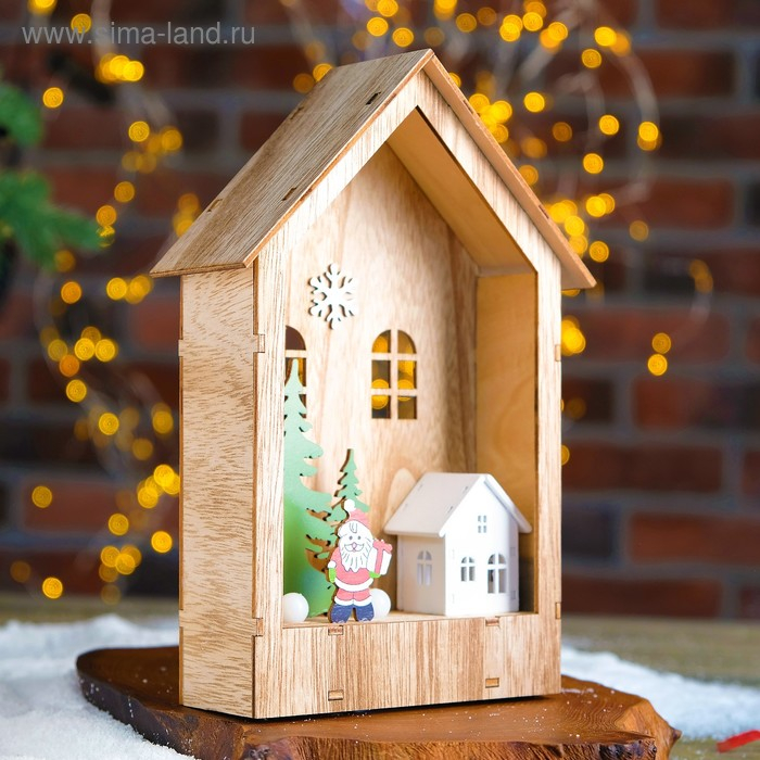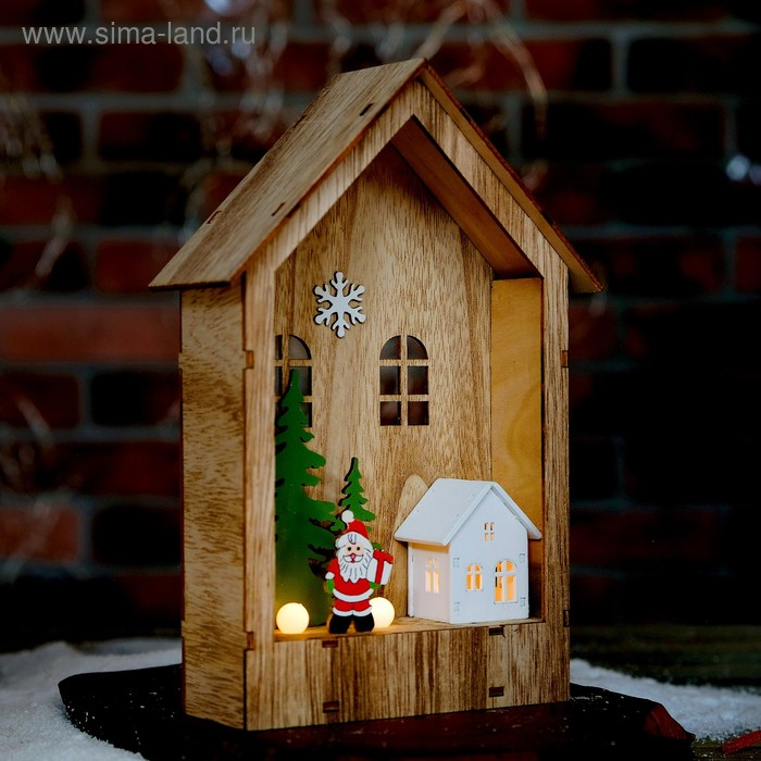 Светодиодная фигура «Дом с Дедом Морозом» 12 × 17 × 4 см, дерево, батарейки АААх2 (не в комплекте), свечение тёплое белое
