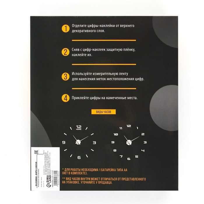 Часы настенные интерьерные большие, 3d "Акстелл", бесшумные, наклейка, d-120 см