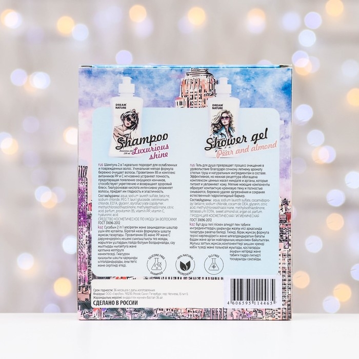 Подарочный набор косметики DreamNature: шампунь для ослабленных и поврежденных волос,250мл + гель для душа, 250 мл