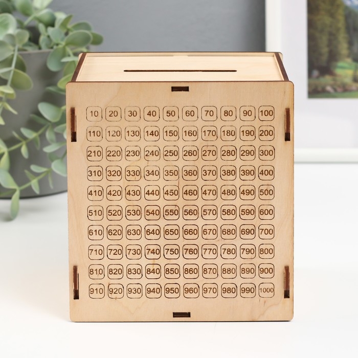 «Копилка из Тик-Тока» поможет тем, кто хочет накопить кругленькую сумму без особых усилий. На фасаде копилки рядами написаны числа в порядке возрастания. Когда вы вкладываете деньги в соответствии с написанным числом, его нужно зачеркнуть. Когда все цифры будут зачёркнуты — копилку можно вскрывать и тратить накопленные деньги.