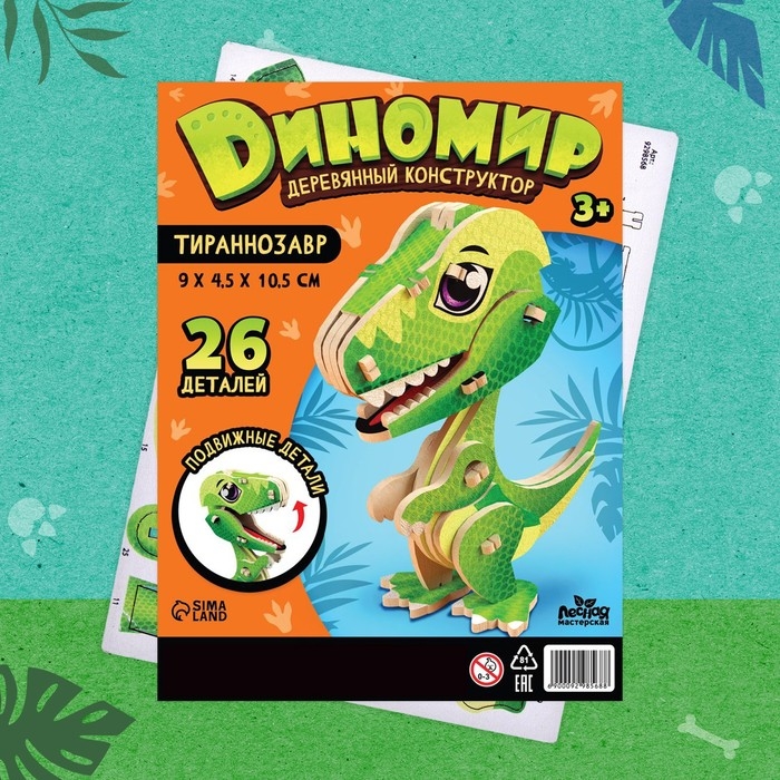 С деревянным конструктором «Тиранозавр» у ребёнка получится собрать 3D-модель динозавра, потренировать внимательность и мелкую моторику рук.