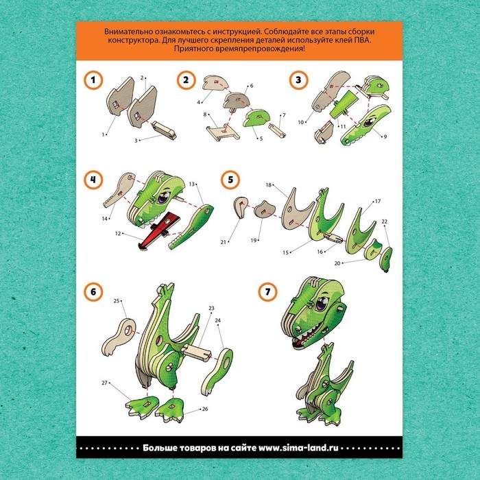 - Для надёжности крепления деталей можно использовать клей ПВА (в комплект не входит).
