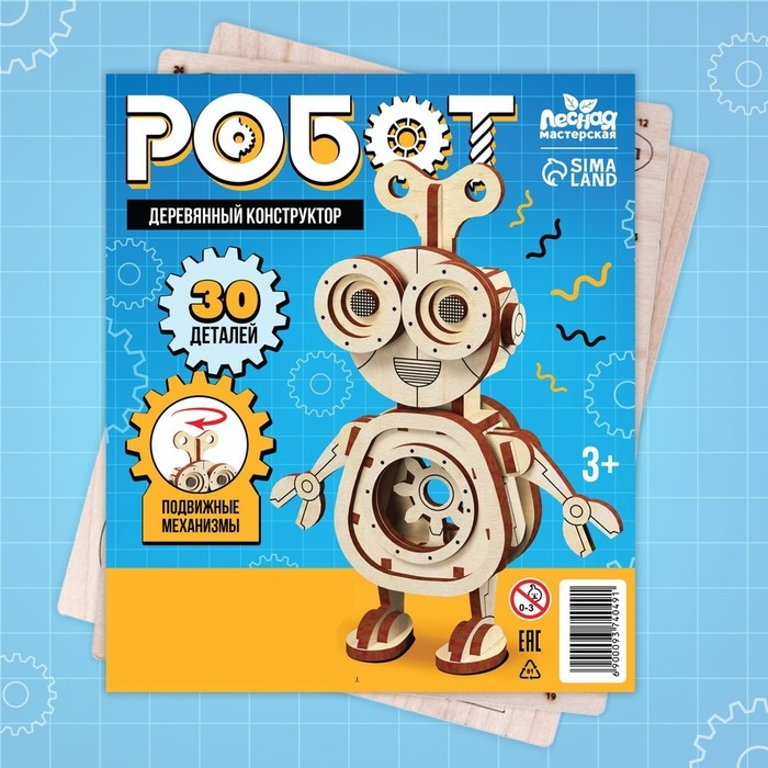 С деревянным конструктором «Робот» у ребёнка получится собрать 3D-модель, потренировать внимательность и мелкую моторику рук.