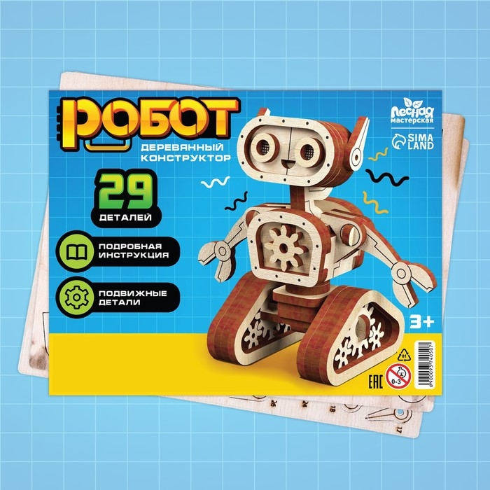 С деревянным конструктором «Робот» у ребёнка получится собрать 3D-модель, потренировать внимательность и мелкую моторику рук.