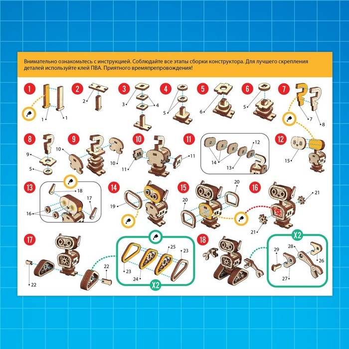 - Для надёжности крепления деталей можно использовать клей ПВА (в комплект не входит).