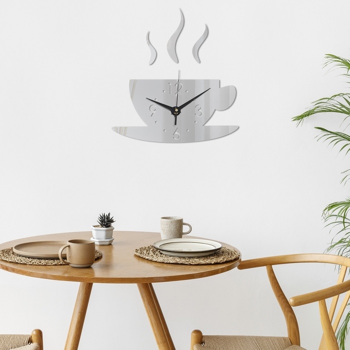 Часы настенные интерьерные для кухни, 3d "Аромат кофе", наклейка, большие, 28 х 28 см