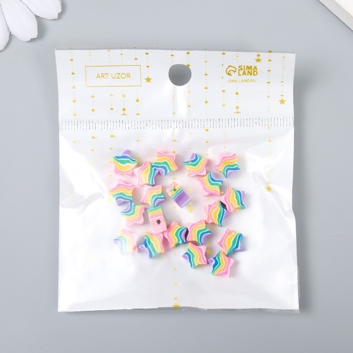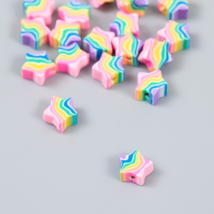Бусины для творчества PVC "Звёздочки радуга" набор 20 шт 0,5х1х1 см