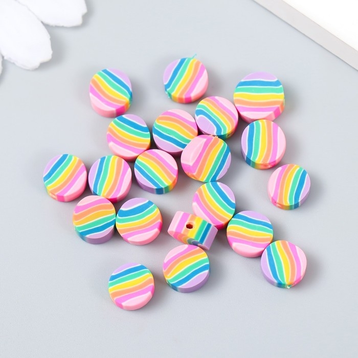 Бусины для творчества PVC "Кружочки радуга" набор 20 шт 0,5х1х1 см