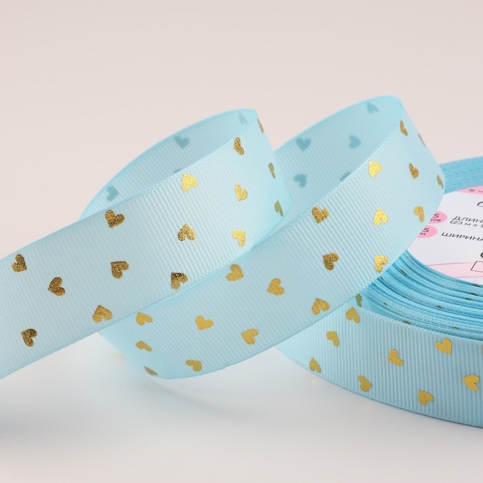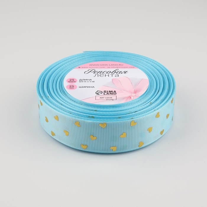 Лента репсовая с тиснением «Сердечки», 25 мм, 23 ± 1 м, цвет голубой №011