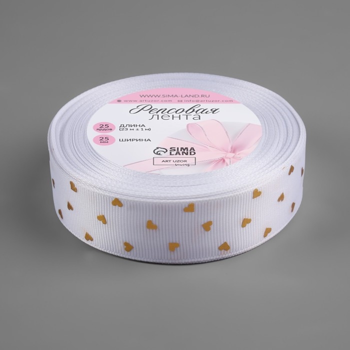 Лента репсовая с тиснением «Сердечки», 25 мм, 23 ± 1 м, цвет белый №001