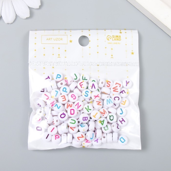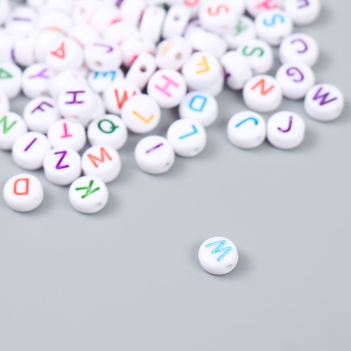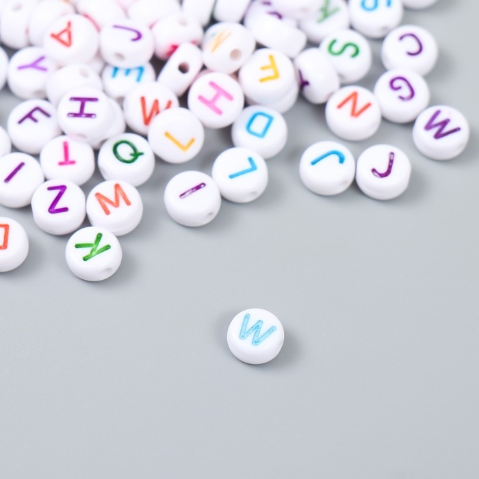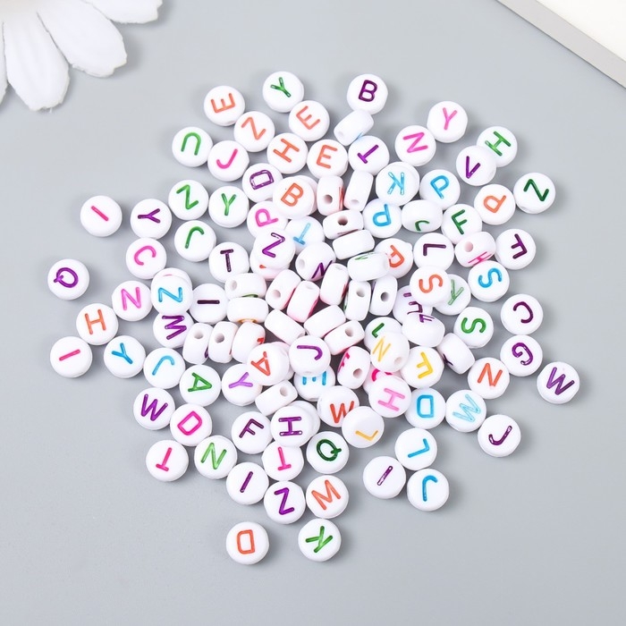 Бусины для творчества пластик "Англ. буквы в круге" разноцветные н-р 15 гр 0,3х0,6.х0,6см