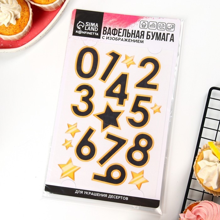 Вафельные картинки съедобные «Цифры» для капкейков, торта KONFINETTA, 1 лист А5