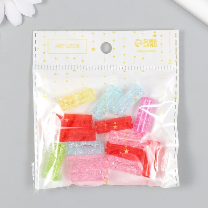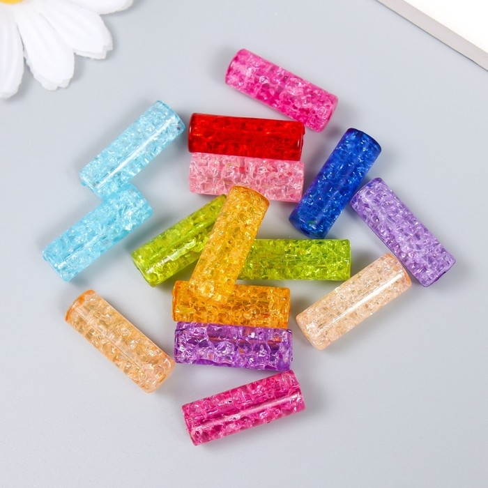 Бусины для творчества пластик "Цилиндр. Пузырьки" набор 15 шт МИКС 0,9х0,9х2,6 см
