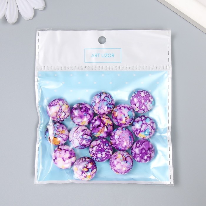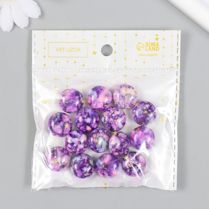 Бусины для творчества пластик "Мраморные. Фиолетовый" набор 15 шт 1,7х1,7х1 см