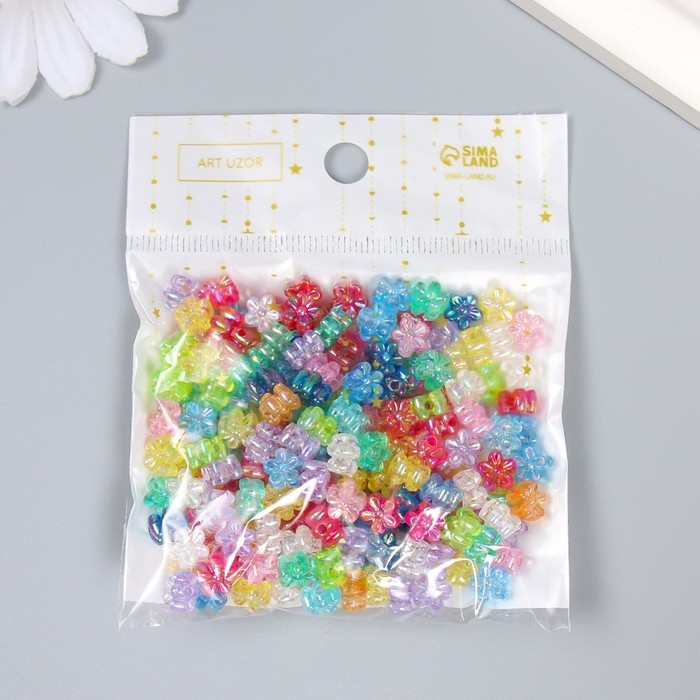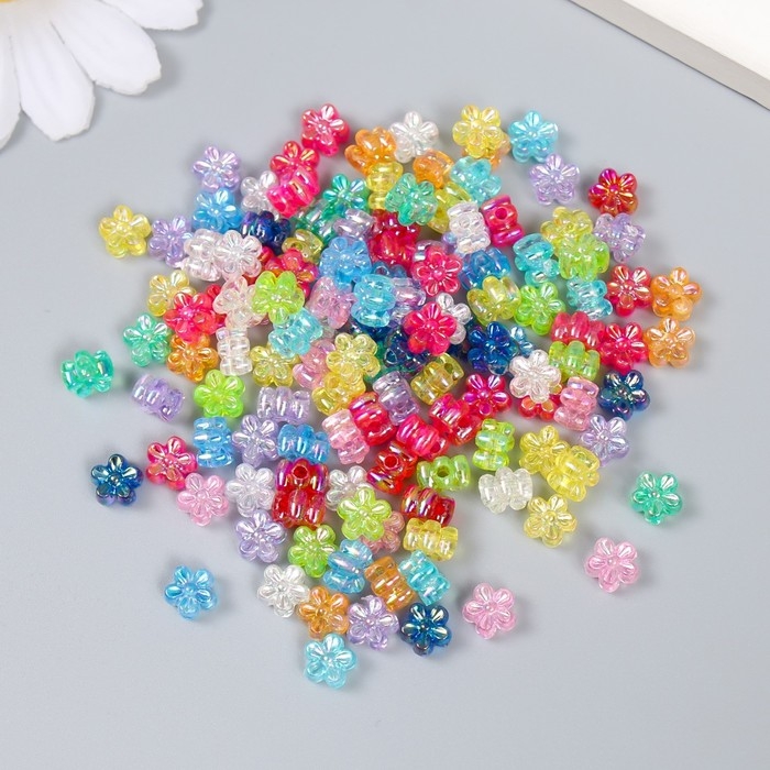 Бусины для творчества пластик "Цветок. Разноцветный перламутр" н-р 20 гр 0,7х0,7х0,4 см