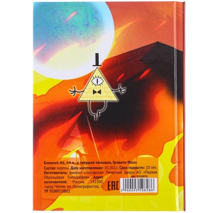 Блокнот А6, 64 листа, в твёрдой обложке, Гравити Фолз