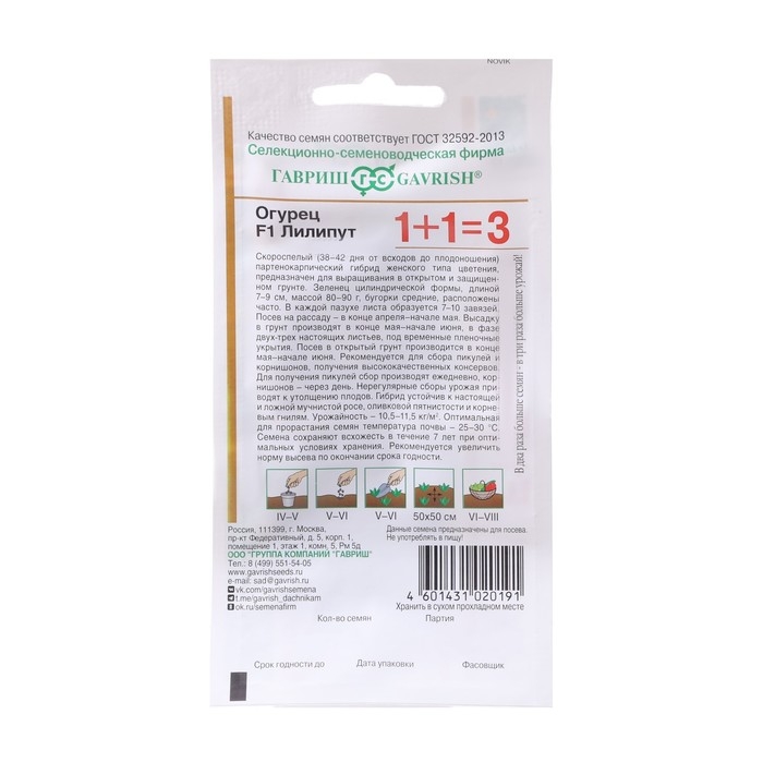Семена Огурец "Лилипут", F1, пикуль, серия 1+1, 20 шт