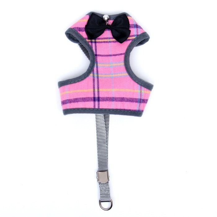Стильный прогулочный комплект для собак в клетку с украшением в виде бабочки и бубенцом. Шлейка регулируется, поводок круглый прочный , ручка поводка не доставляет неудобств для вас при натежении. Шлея для собак 3 , 5 , 10 , 15 кг средних и мелких пород : шпица , бульдога , чихуахуа , йорка , мопс , такс и маленьких и больших кошек , котов типа мейн кун . Шлейка текстильная , регулируется металическим креплением. Поводок крепится к металлическому кольцу карабином. Шлейка исключит побег животного, если правильно подобрать размер и отрегулировать ремни.