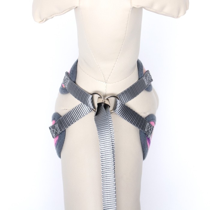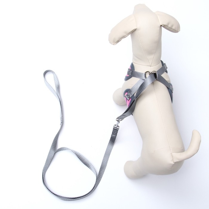 Комплект амуниции с мягкой шлейкой, M, поводок 120 х 1,5 см, ОШ 26-48 см, ОГ 26-48 см, серый