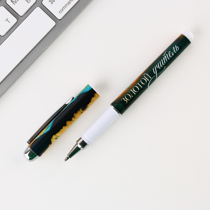 Ручка в тубусе «Золотому учителю, С Уважением!», пластик, синяя паста, 1.0 мм
