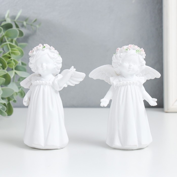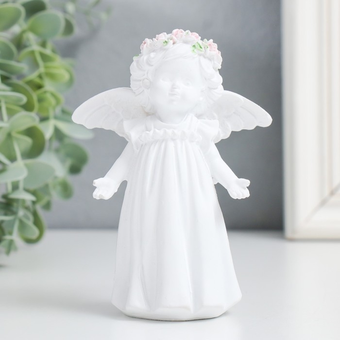 Сувенир полистоун "Малышка-ангелок - встреча" белоснежный" МИКС 8,5х5х11,3 см