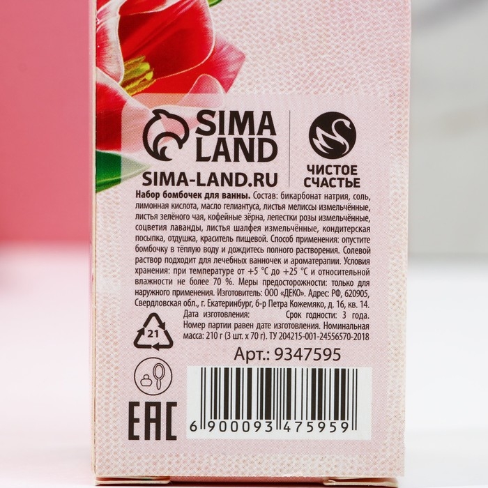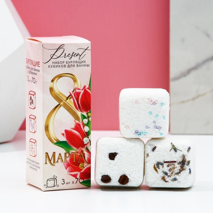Подарочный набор косметики «С 8 Марта!», бомбочки для ванны с добавками 3 х 70 г, ЧИСТОЕ СЧАСТЬЕ