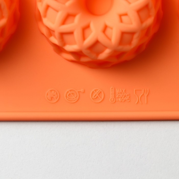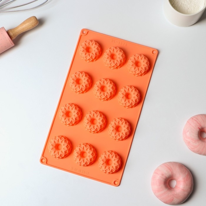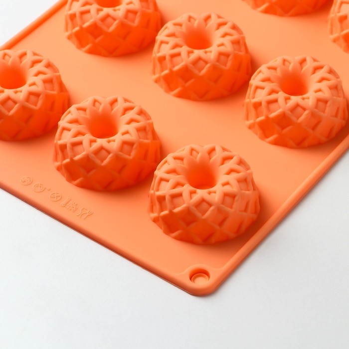 Форма для выпечки Доляна «Немецкий кекс. Ажур», силикон, 12 ячеек, 28×16×1,5 см, цвет оранжевый