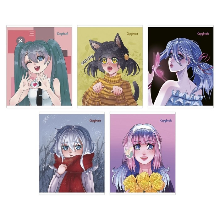 Тетрадь 48 листов, в клетку, "Аниме", обложка мелованный картон, твин-лак, УФ-лак 5В МИКС