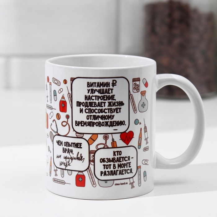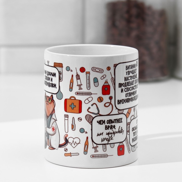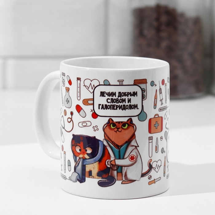 Кружка изготовлена из керамики. Рисунок нанесён методом сублимации, при котором краска проникает в верхний слой изделия, поэтому изображение получается стойким.