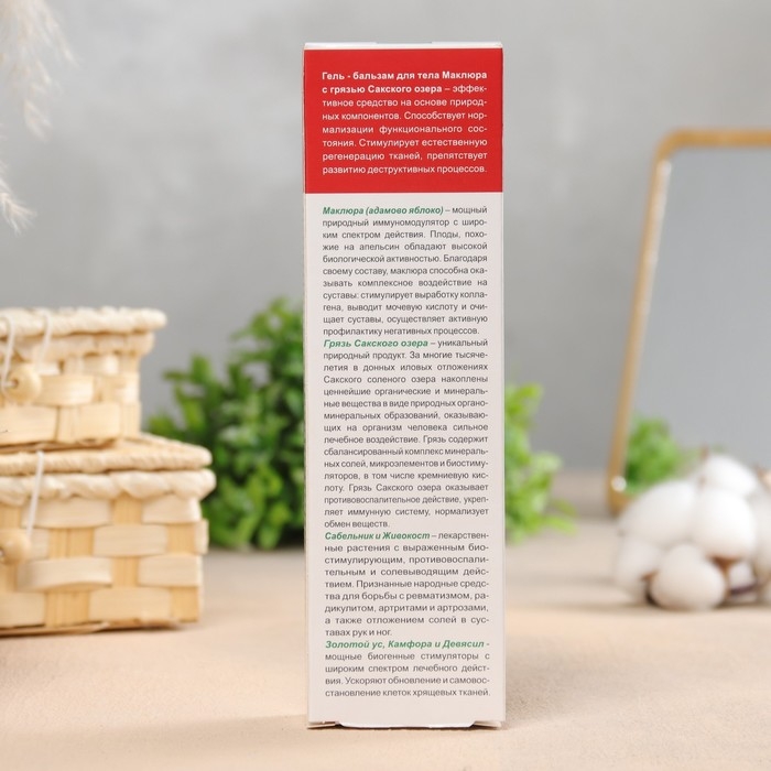 Гель-бальзам для тела - эффективное натуральное средство для тела в области суставов на основе уникального природного компонента маклюры. Способствует улучшению функционального состояния, тормозит деструктивные процессы и активизирует регенерацию.