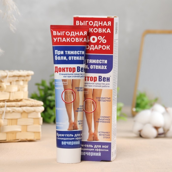 Крем гель для ног Доктор Вен "Вечерний" - эффективное натуральное средство. Снимает чувство тяжести и усталости ног, улучшает отток крови, снижает неприятные ощущения. Благодаря выраженному охлаждающему эффекту, возвращает ногам чувство легкости и прохлады. Повышает тонус сосудов, улучшает микро циркуляцию и лимфоотток, снижает риск возникновения трофических изменений кожи.